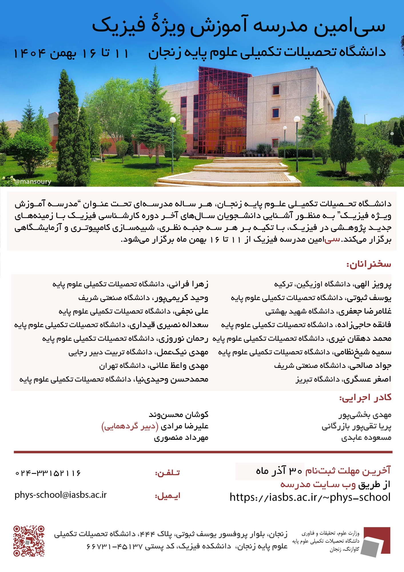 مکان: دانشکده فیزیک دانشگاه تحصیلات تکمیلی علوم پایهوب مدرسه: https://iasbs.ac.ir/~phys-school/