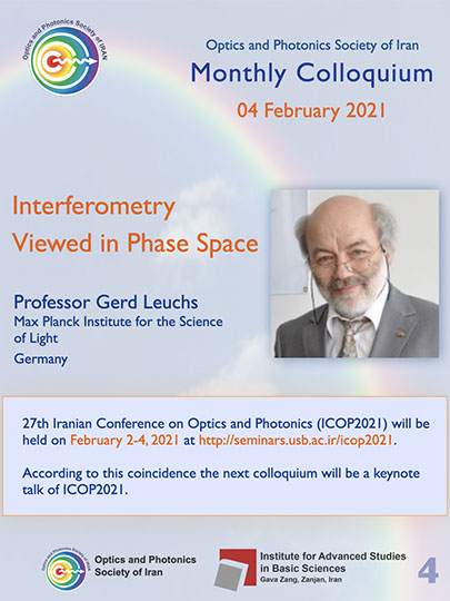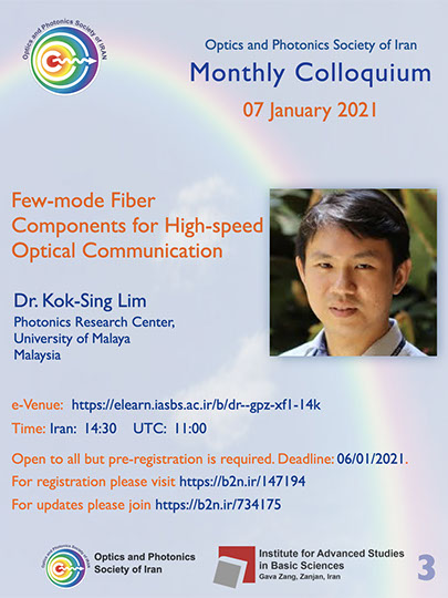 The Optics and Photonics Society of Iran (OPSI) organizes monthly colloquiums on Optics. Distinguished lectures in the field will present exciting topics along with providingeducational outreach to students. The activity is open to all and it is free, but pre-registration is required.